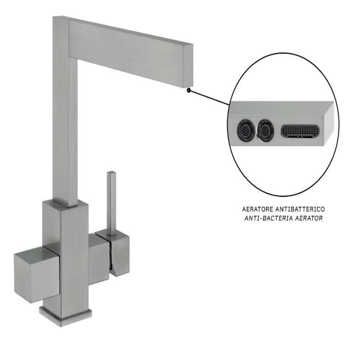 Τρίοδος μίκτης νεροχύτη, 100% Ιταλικής κατασκευής, με περιστρεφόμενο στόμιο σε κεραμική έδρα.