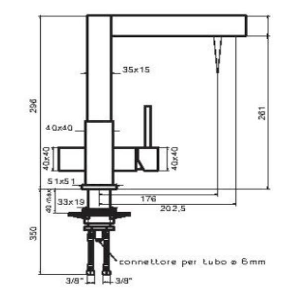 Φέρει δύο κεραμικές βαλβίδες που ρυθμίζονται με μία λαβή στη δεξιά πλευρά και ένα στροφείο στην αριστερή. Διαθέτει 3/8 ” Θ εύκαμπτους σωλήνες σύνδεσης (θερμού, κρύου και φιλτραρισμένου νερού).