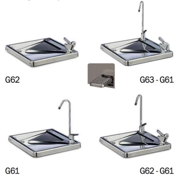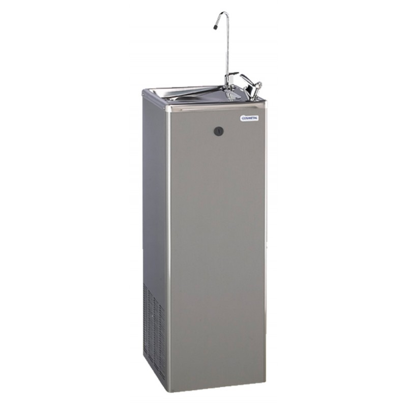 Ψύκτης νερού επιδαπέδιος, υψηλής ικανότητας (συνεχούς ροής)με παγολεκάνη – χωρίς δοχείο νερού (καζανάκι). Φέρει ανοξείδωτη λεκάνη με εργονομικά βρυσάκια και κέλυφος από χαλύβδινη λαμαρίνα βαμένη ηλεκτροστατικά. Εναλλακτικά διατίθεται με κέλυφος εξ’ ολοκλήρου από ανοξείδωτο χάλυβα.